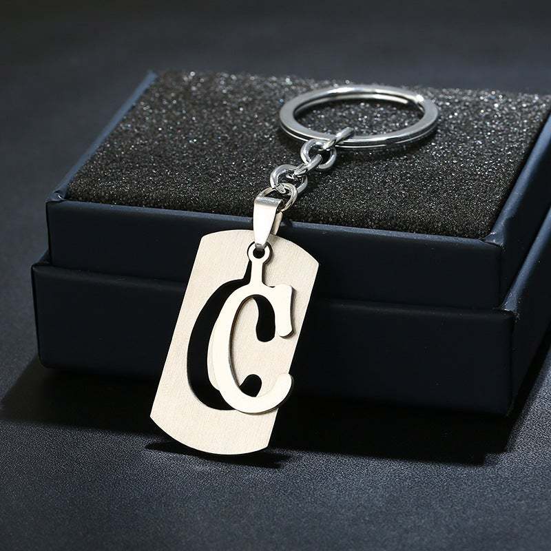Silver Alphabet Keychain Simple Initial Letter Keychain Birthday Gift