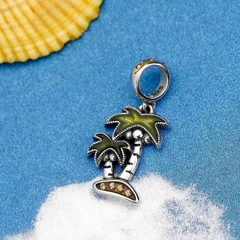 Silver Coconut Tree Dangle Charm with Crystal Crystal