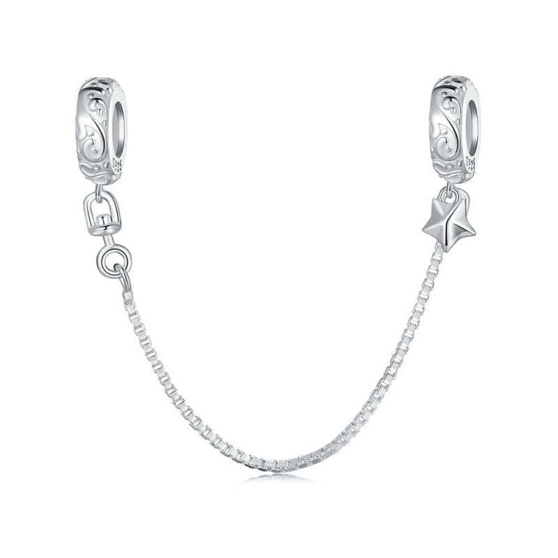 Simple Pattern Safety Charm Chain Silver