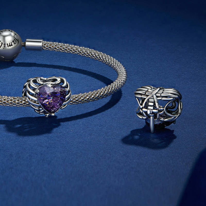 Skeleton Heart Charm Silver