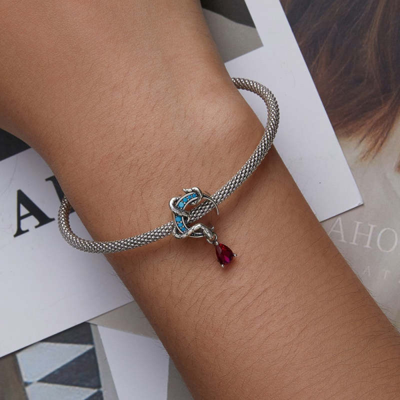 Snake Pink Diamond Charm Silver