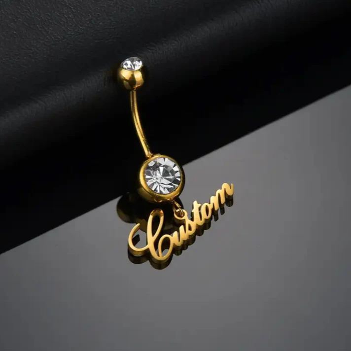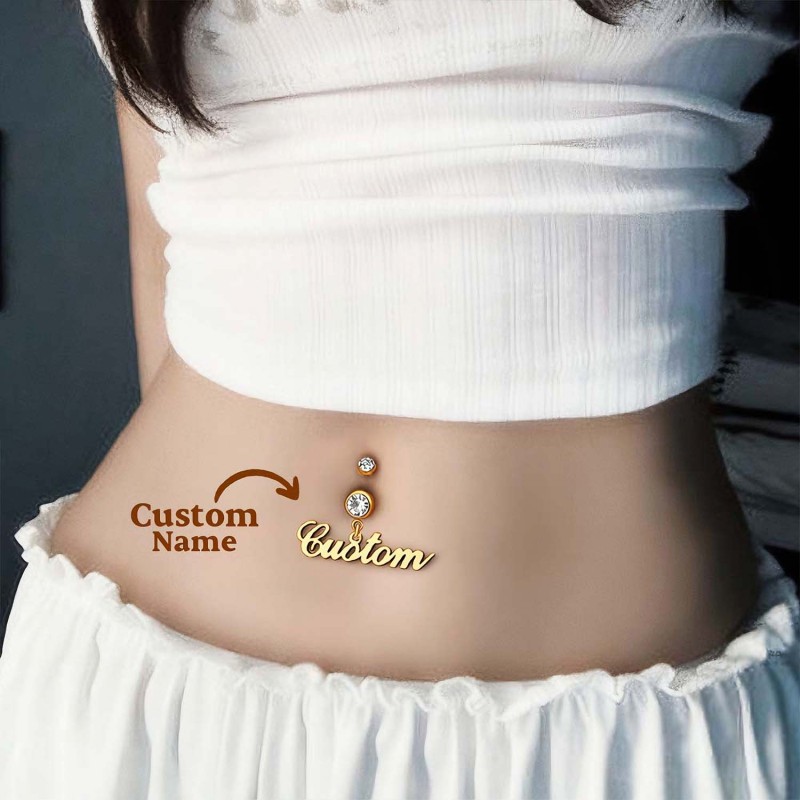 Personalized Stainless Steel Belly Ring Custom Name Engraved Navel Jewelry Gift for Her