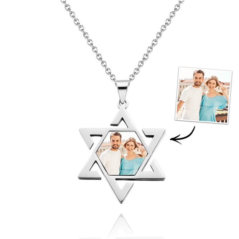 Enhance your style with our Star of David Necklaces. Crafted from high-quality stainless steel, these necklaces are available in four colors: Silver, Gold, Rose Gold, and Black. With a customizable picture, they make for a perfect gift for best friends. Suitable for any occasion, these necklaces are a symbol of elegance and quality.