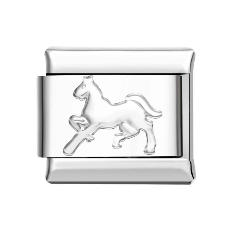 Italian charms are modular spring-loaded Links That slide open to connect to each other. The height is 0.9cm, and the width is 1cm. Combined, they create a custom bracelet with your own personal touch.