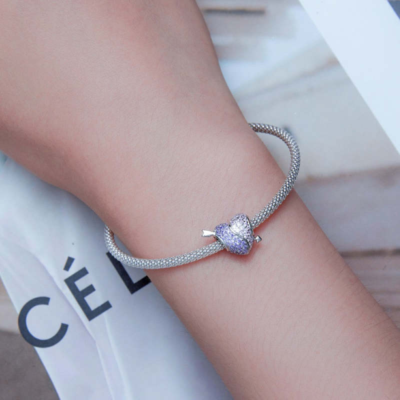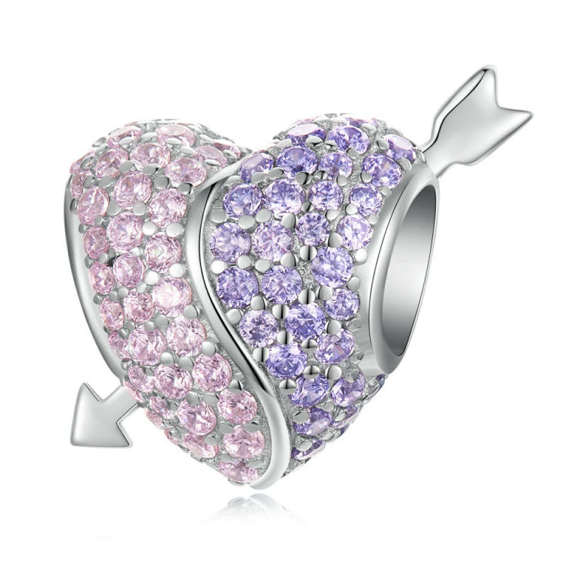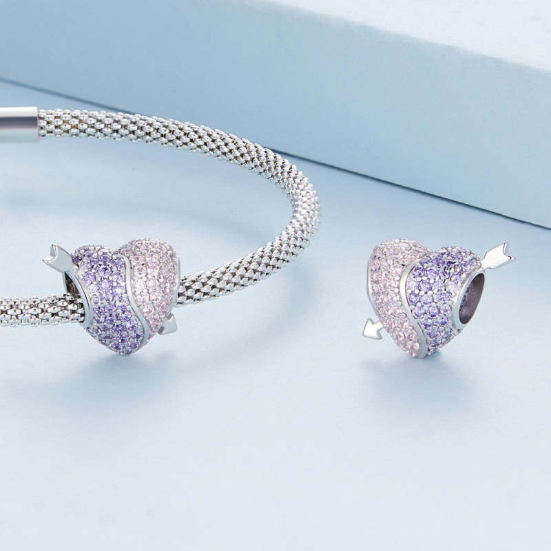 Tai Chi Heart Shape Pink Purple Charm Silver