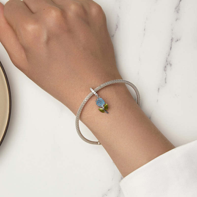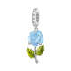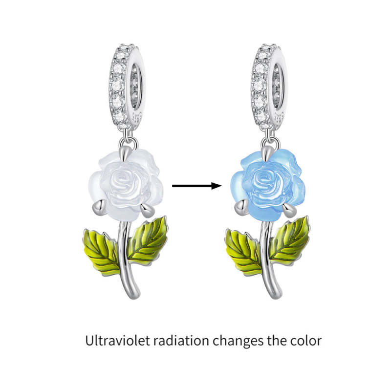 Temperature Discoloration Crystal Blue Rose Dangle Charm Silver