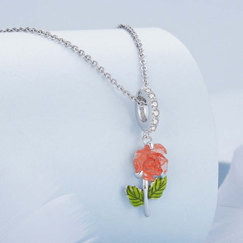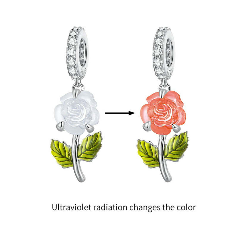 Temperature Discoloration Crystal Orange Rose Dangle Charm Silver