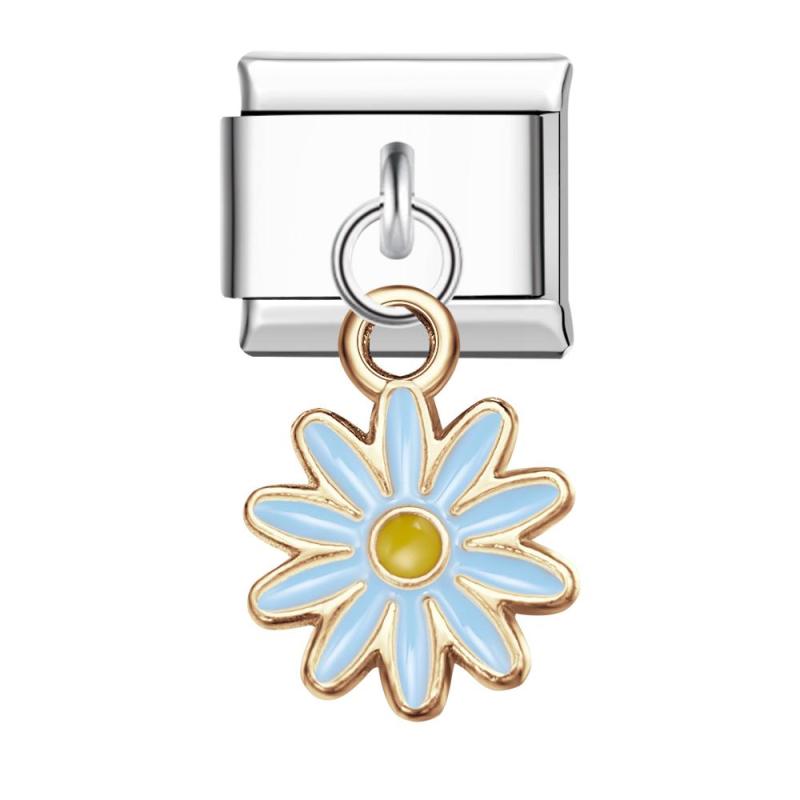 Ten Petal Flower-Blue Italian Charm For Italian Charm Bracelets Composable Link