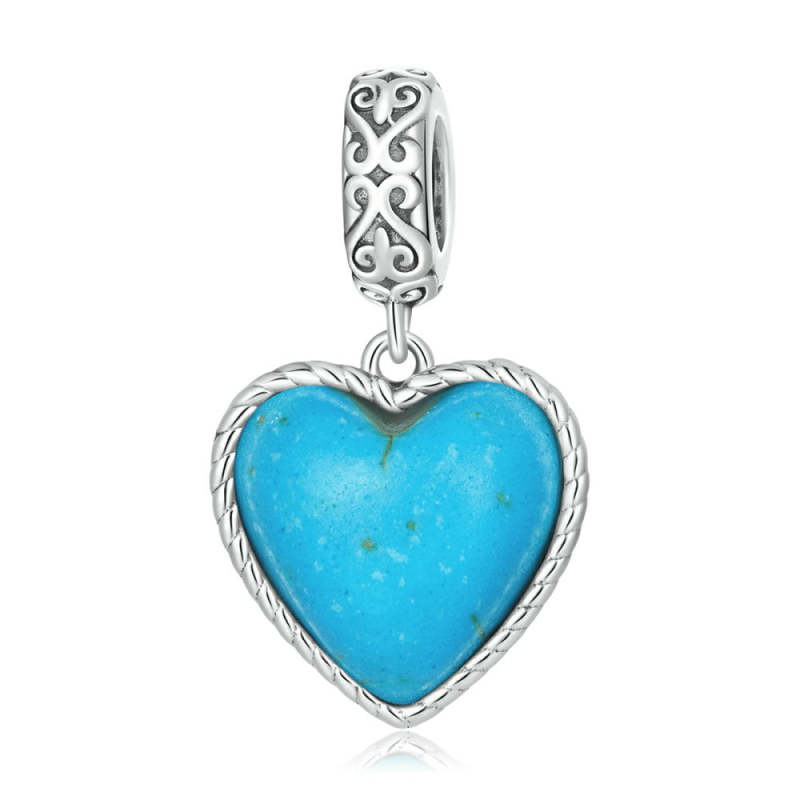 Turquoise Heart Dangle Charm Silver