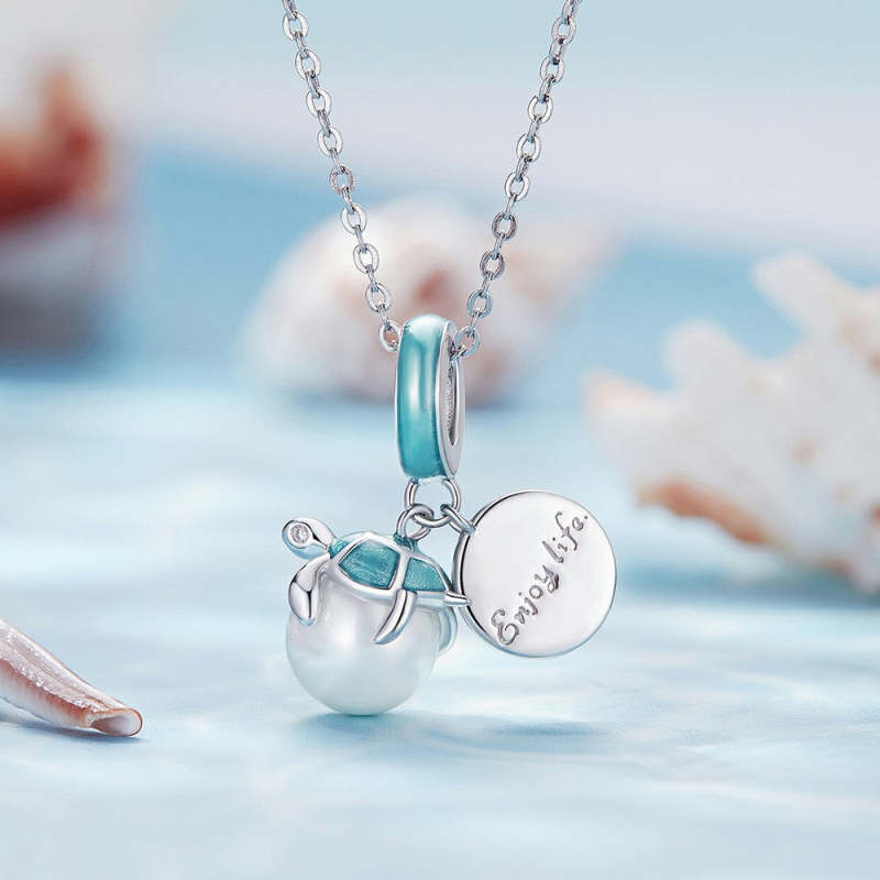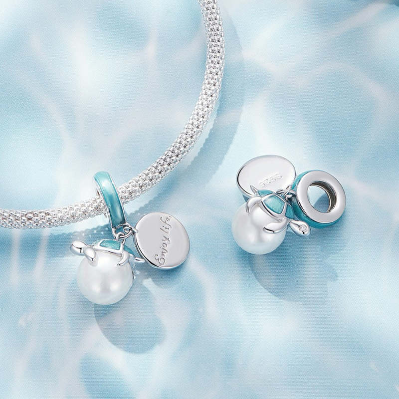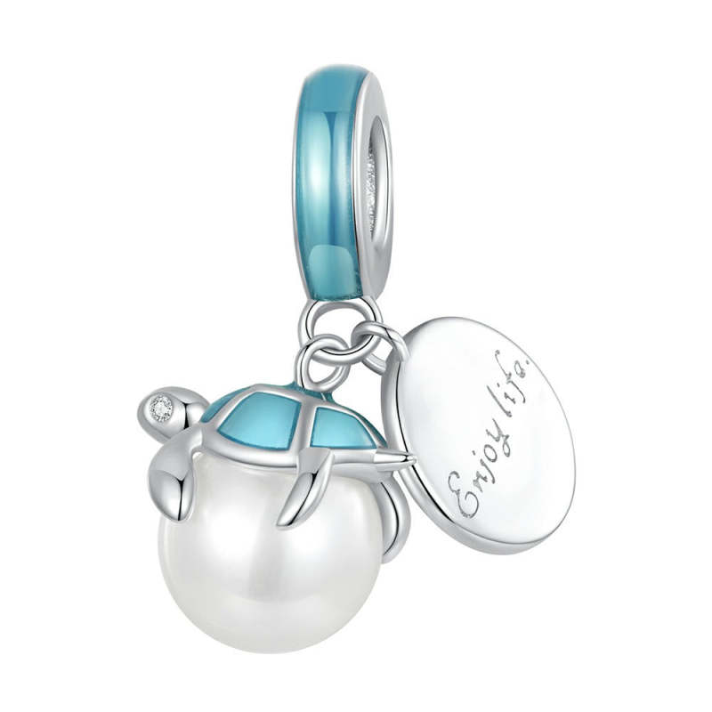 Turtle Tag Dangle Charm Silver