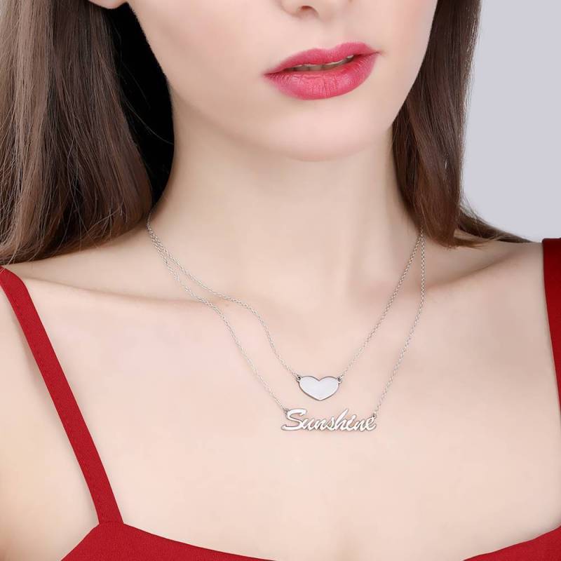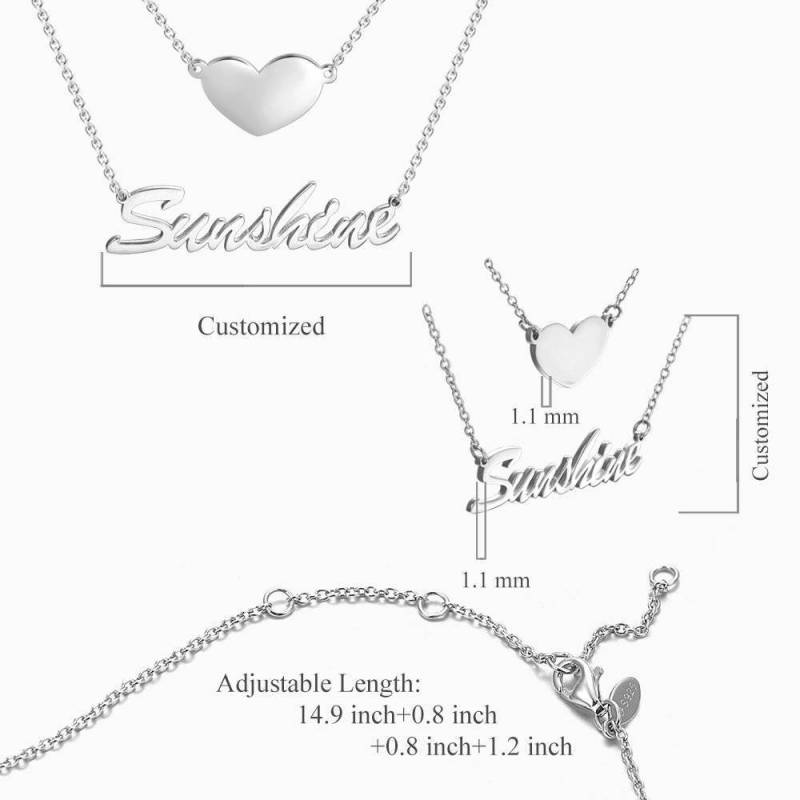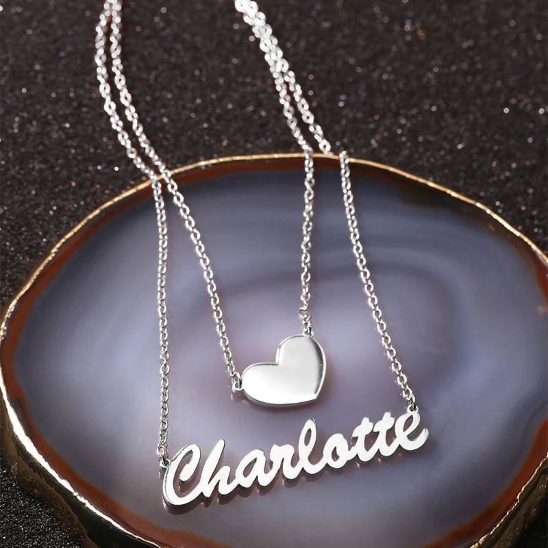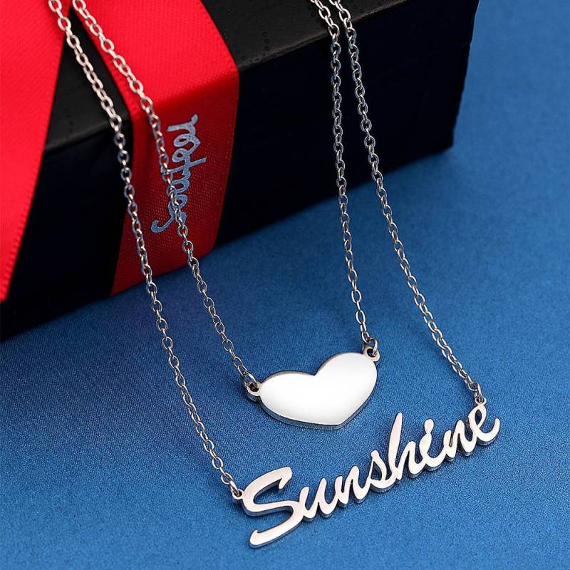 Two Layers Personalized Heart Name Necklace Silver