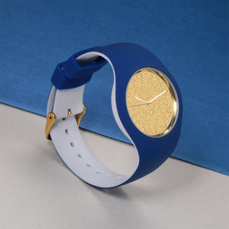 Unisex Silicone Engraved Watch Unisex Engraved Watch 41mm Blue and White Strap - Golden