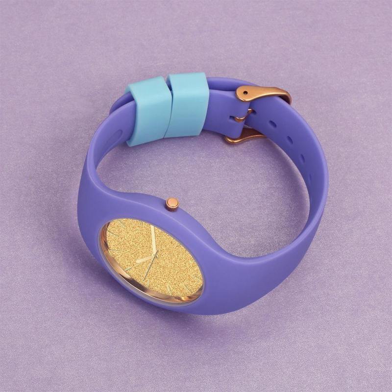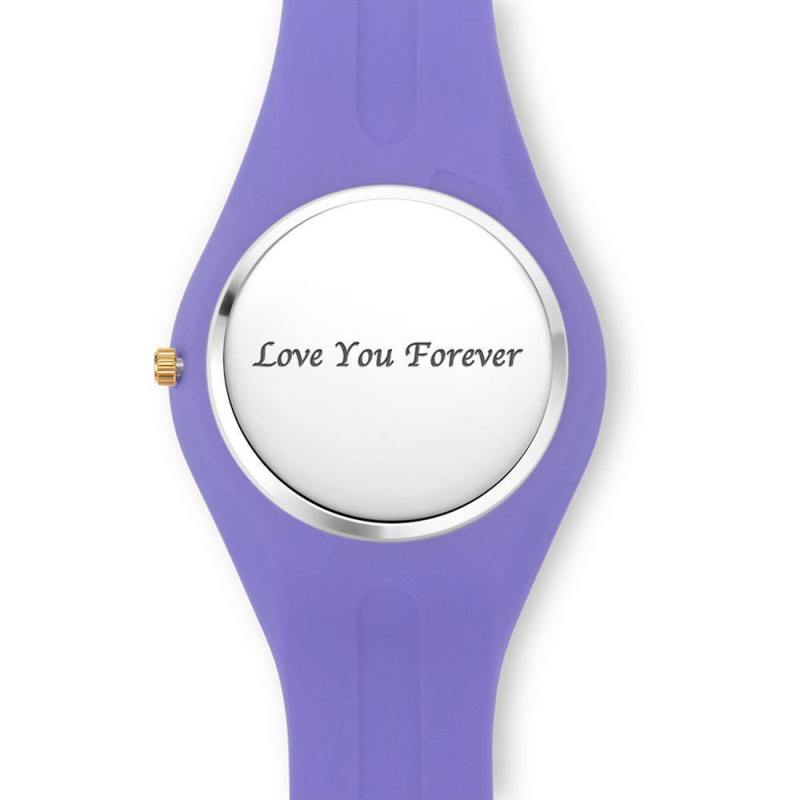 Unisex Silicone Engraved Watch Unisex Engraved Watch 41mm Purple Strap - Golden