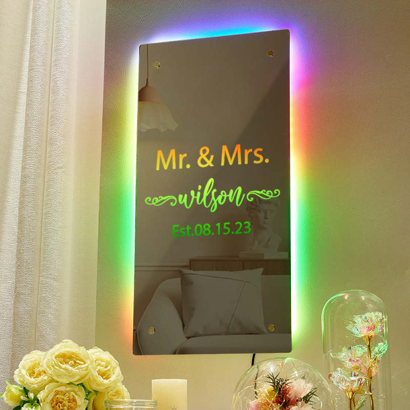 Please note: you can change the colours on the product via the remote control supplied you do not select the colours while ordering.The name mirror is made with safety in mind, we use acrylic safety mirror which lightweight and shatterproof.