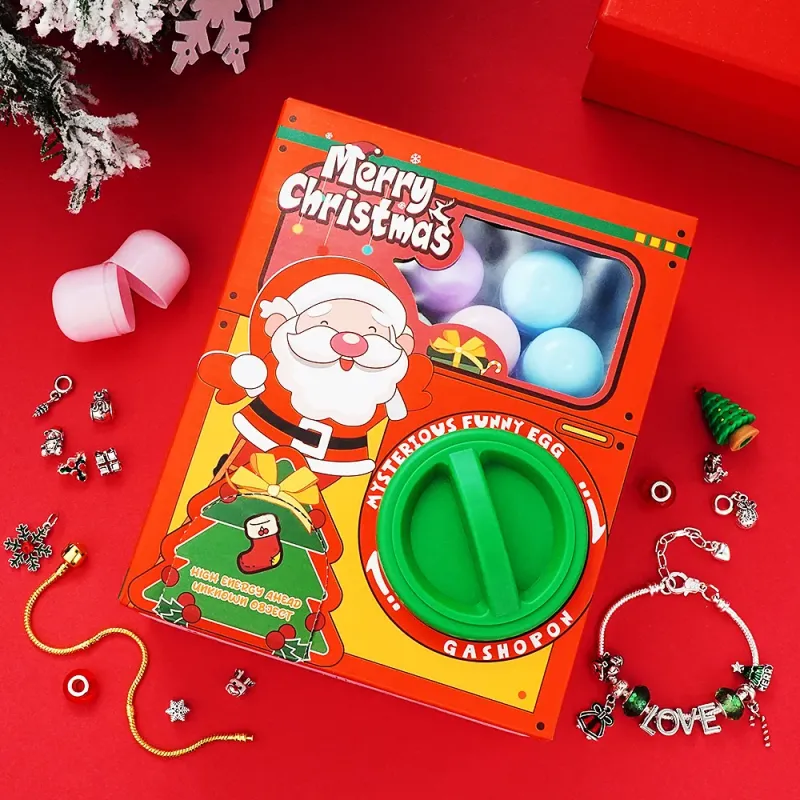 This Vending Gashapon Machine offers a unique twist on the traditional jewelry advent calendar. The Christmas Charm Surprise Blind Box contains a total of 24 products, including 2 charm bracelets and 20 beaded strands. It allows you to customize each gashapon with any small item. Get ready for a delightful and unexpected Christmas gift!