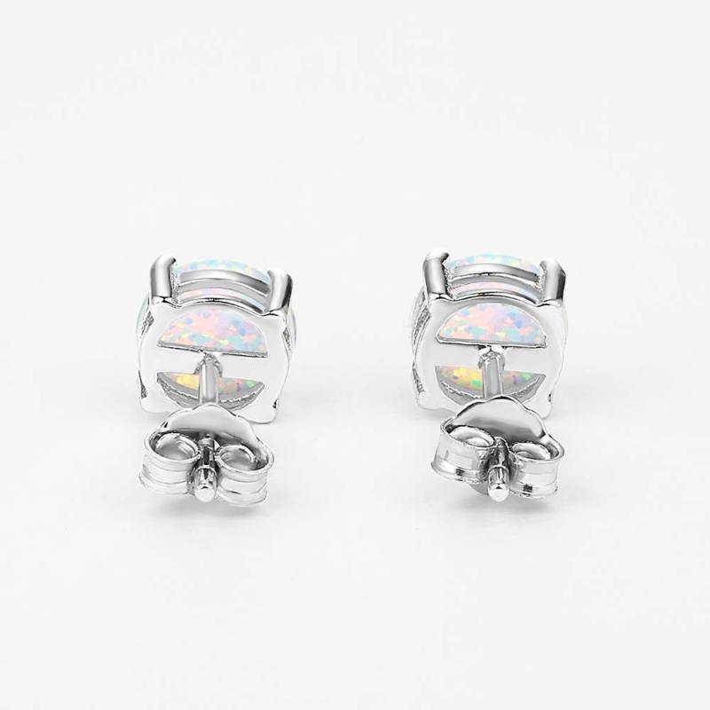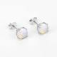 White Earrings Silver Opal