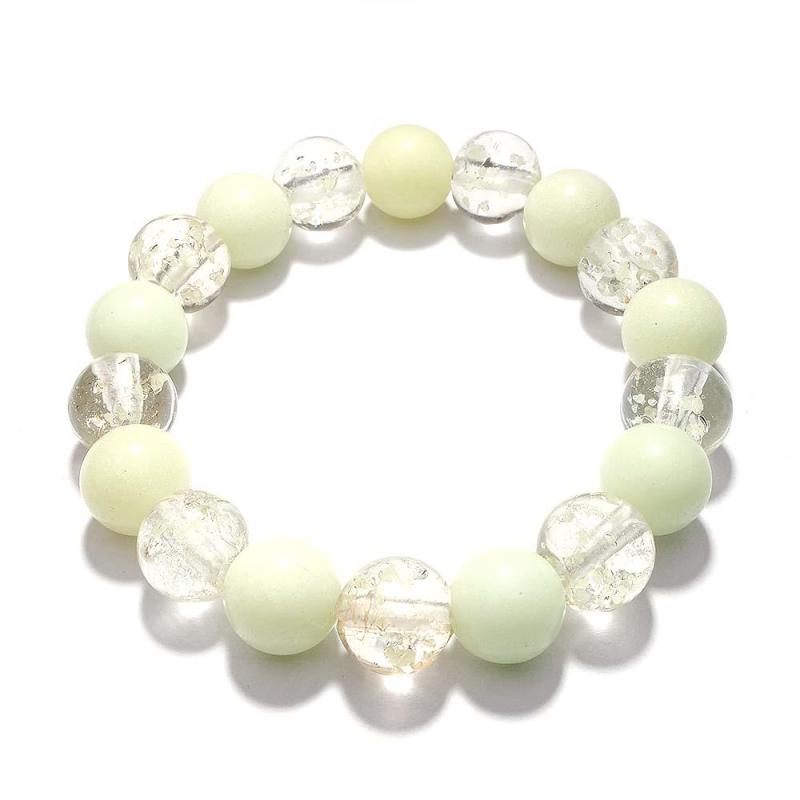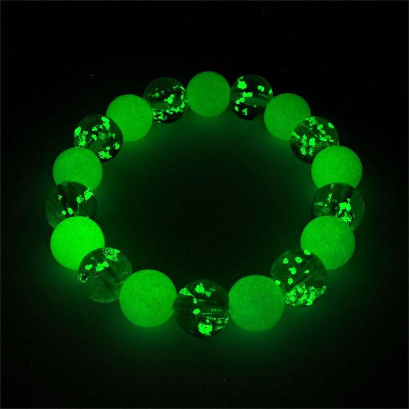 White Firefly Glass Stretch Beaded Bracelet Glow in the Dark Luminous Bracelet