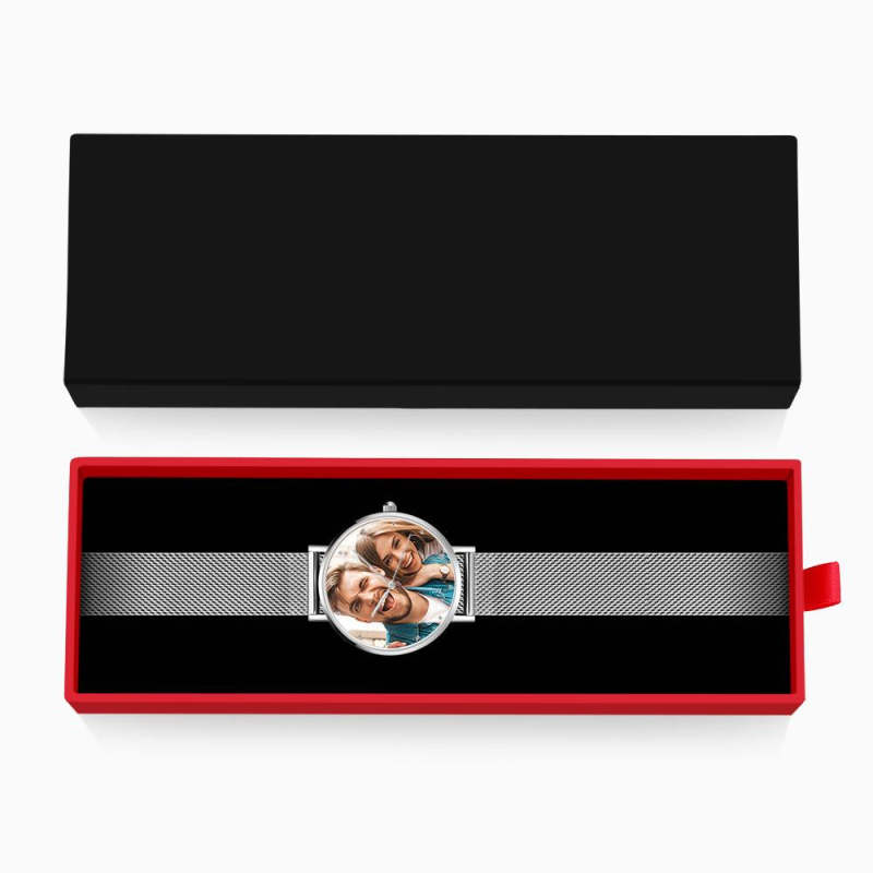 Women's Engraved Calendar Alloy Bracelet Photo Watch 36mm