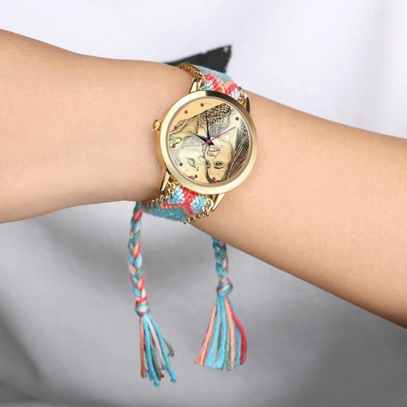 Women's Gold Photo Engraved Watch Braided Color Rope Strap 40mm