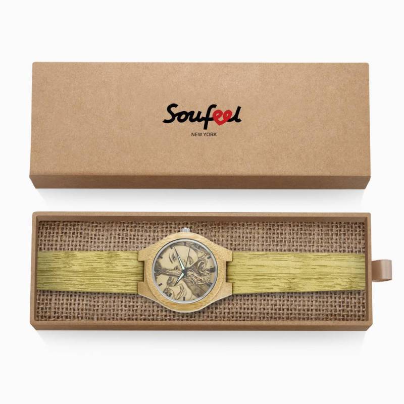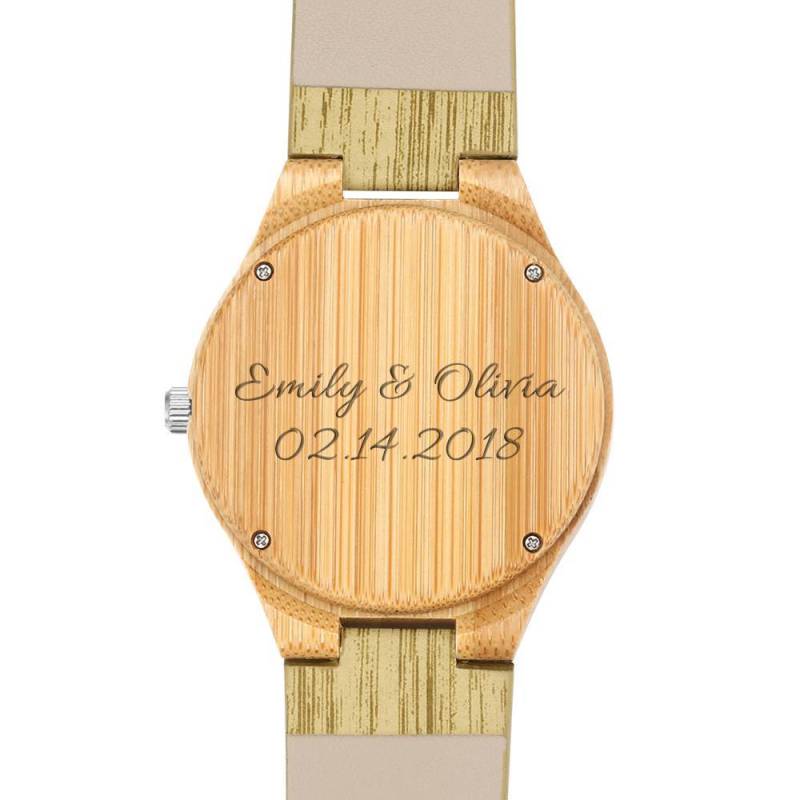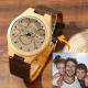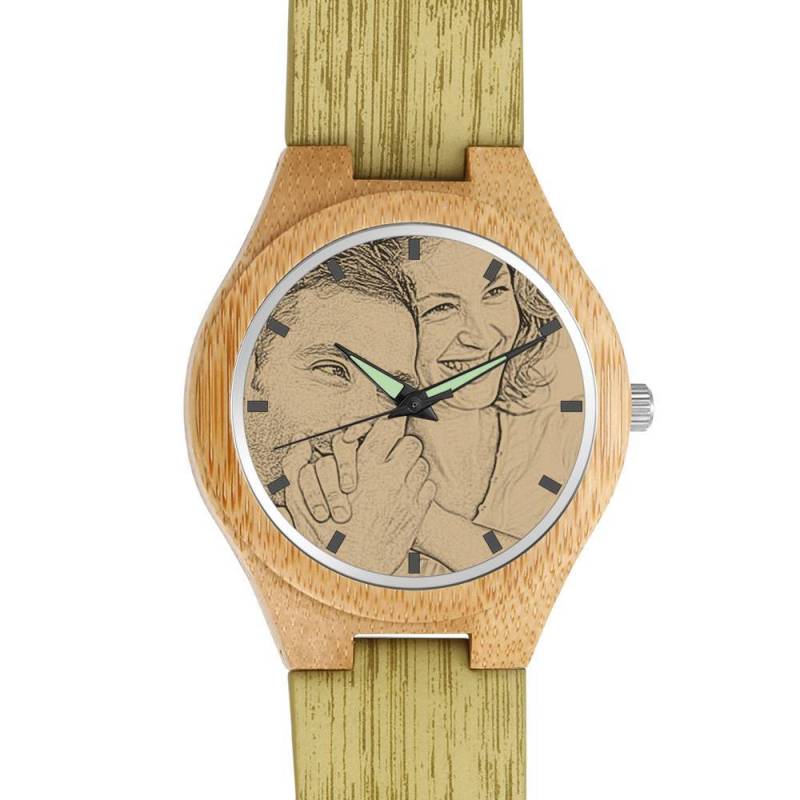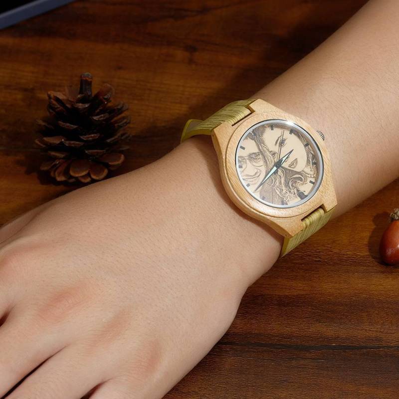 Women's Engraved Bamboo Photo Watch Wooden Leather Strap 40mm