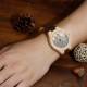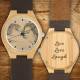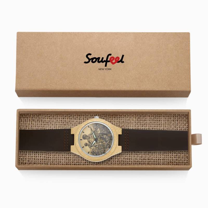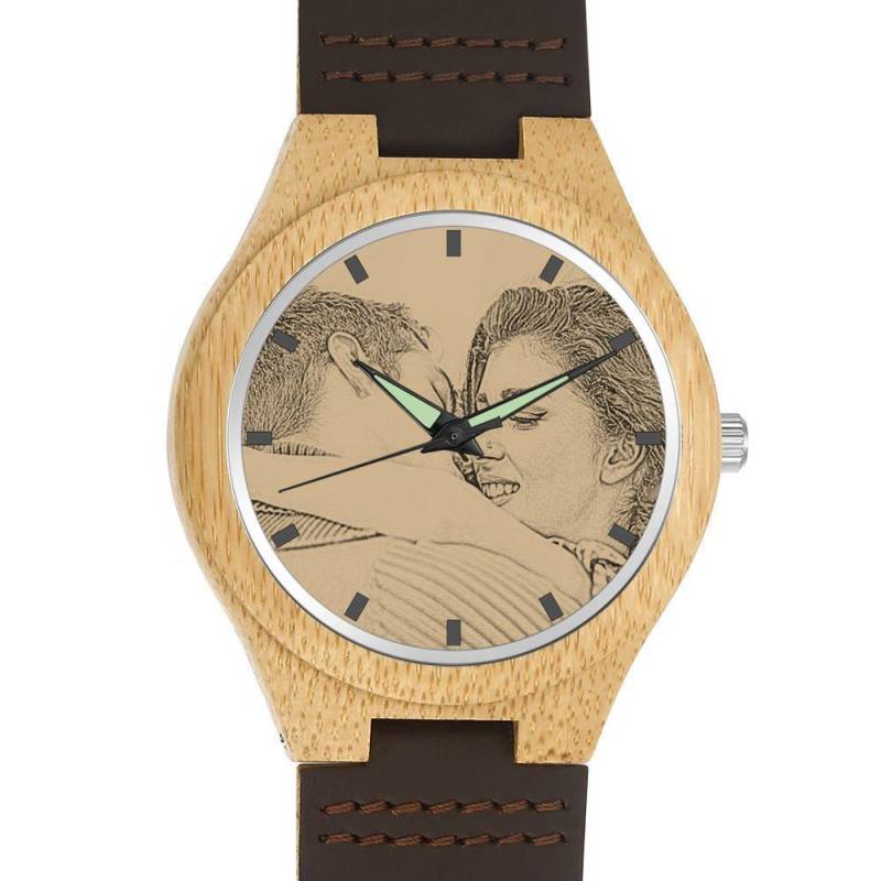 Women's Engraved Bamboo Photo Watch Brown Leather Strap 40mm