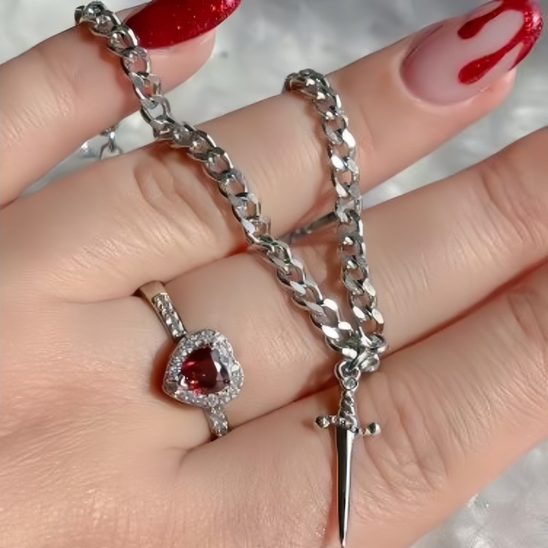 Celebrate your unique bond with our "You Are In My Heart" Ring and Bracelet Set, beautifully designed to express love and connection. This enchanting set includes a delicate heart-shaped ring, featuring a striking sword motif that symbolizes strength and protection, making it a perfect gift for someone special or a thoughtful treat for yourself.