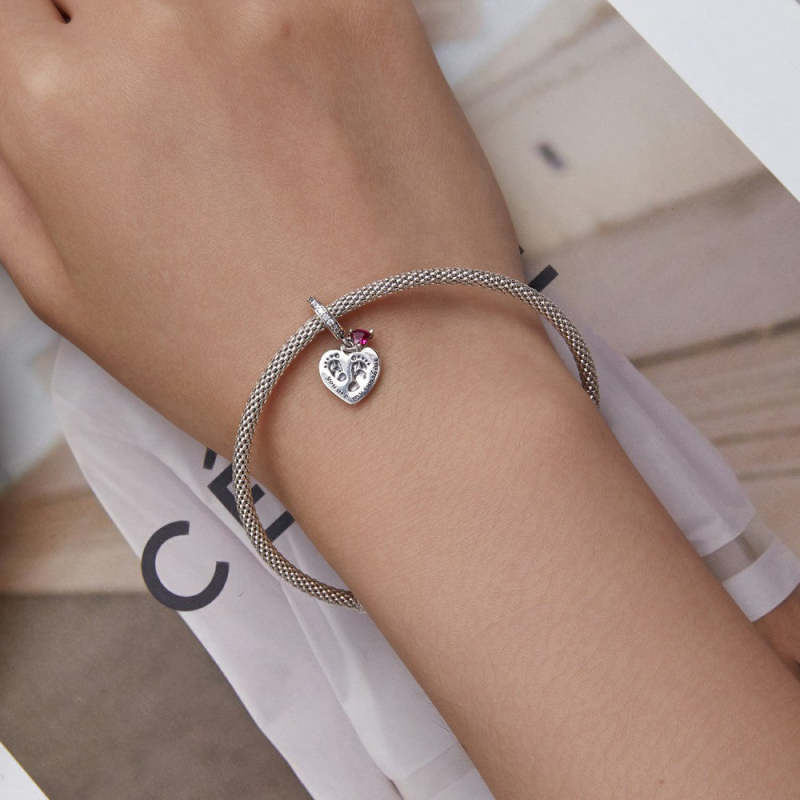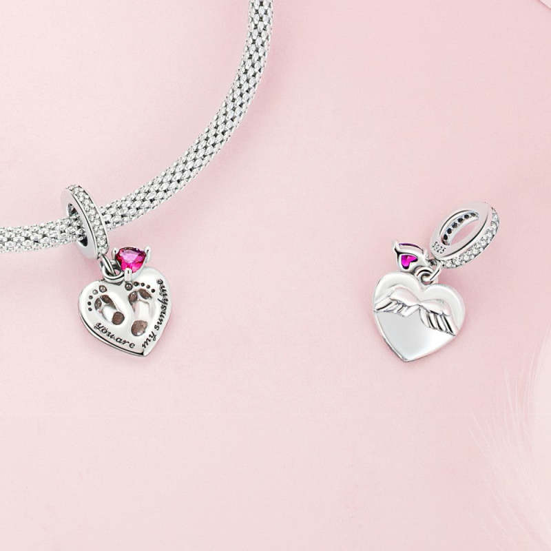 You Are My Sunshine Baby Footprint Dangle Charm Silver
